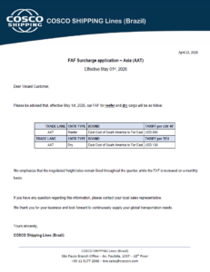 Fundada em 18 de maio de 1994 na cidade de São Paulo, a Cosco Brasil S/A atende com seus serviços a grandes produtores do segmento industrial, agentes de carga, NVOCC’s e empresas de comércio exterior, colocando-se hoje entre os maiores armadores brasileiros em volumes transportados.
